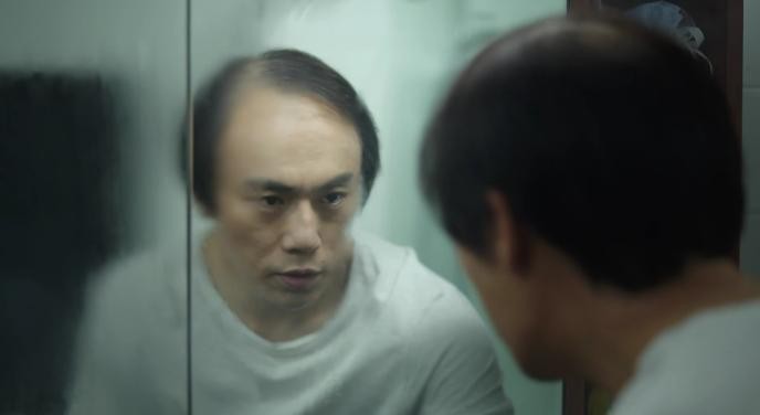 尤其他在镜子前摘下假发那一幕,眼神中的温柔瞬间变成凶狠、痛恨,在夜色下显得格外阴毒。