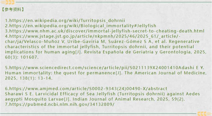 灯塔水母的这种特性也说明,自然界远比我们想象的更神奇。它虽然可能不会真的“长生不死”,但它的生命周期逆转机制,已经让它成为地球上最独特的生物之一。人类一直在追求长生不老的梦想,从古代的“不老泉”传说,到现代科技的抗衰老研究,灯塔水母的出现,或许让我们看到了某种可能性。也许,在未来的某一天,我们真的能解开衰老的秘密,实现某种程度上的“生命重启”。但在那之前,让我们先惊叹于这个海洋生物的奇迹、保护海洋生态,同时继续探索大自然中那些未知的奥秘吧!