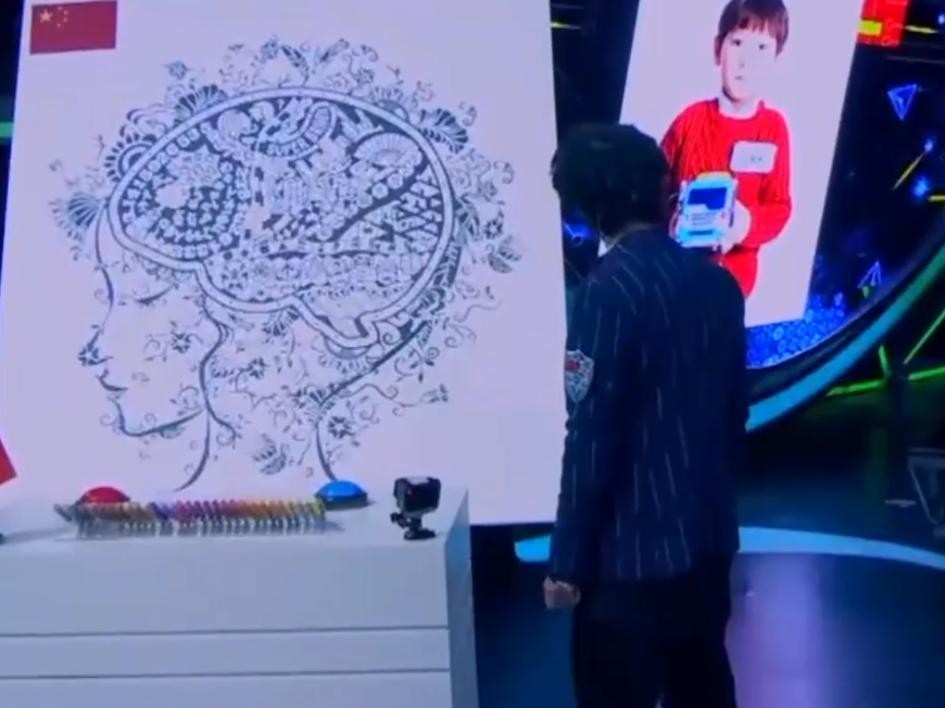 比赛开始后,在试色阶段就显得十分轻松的申一帆,在正式比赛上也不慌不忙的。但要在短时间内记住50个视频短片里,画画的人和对应的画笔颜色和色块,这显然并不容易。