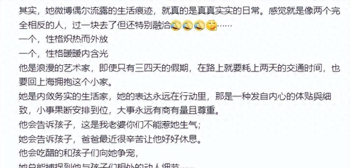 邓超是一个浪漫的艺术家,即便在假期只有三四天的情况下,他也会花费2天的时间回到上海陪伴家人;而孙俪则是一个内敛务实的生活家,她能够果断安排好小事,处理好大事,并且始终尊重邓超。两人相处的过程中,从不互相责怪。