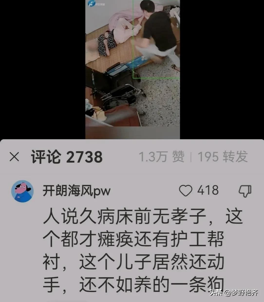 这段视频在网上发布后,立刻引发众多人士对这个当儿子的指责。