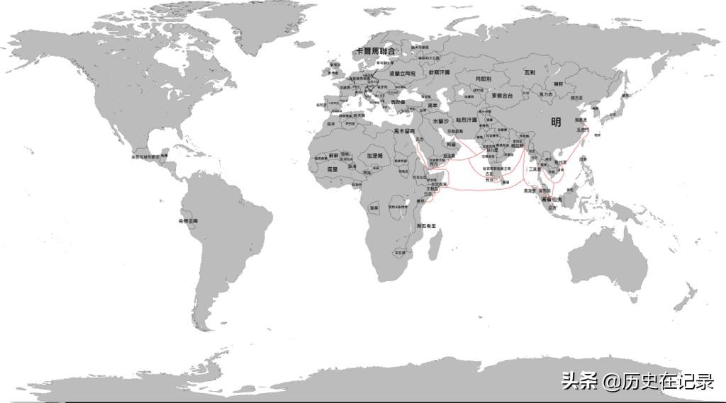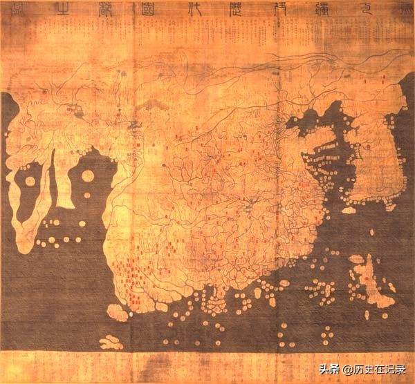 15世纪初,朝鲜所制的《混一疆理历代国都之图》,显示郑和时代的明朝及其藩属国的世界观。
