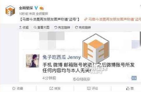 而网友看到这条消息后 则是这样回复的:“人都被偷了,还怕账号被偷?”“手机怎么被盗号???”“有意思吗,掩耳盗铃。”“自己加戏有意思吗?” 关于此事:这个名为“兔子吃西瓜”的微信在上周六王宝强发布离婚声明之后,发布了一条“疯狗咬人”朋友圈,疑似回应离婚声明。