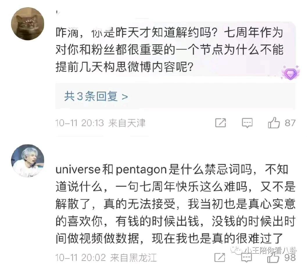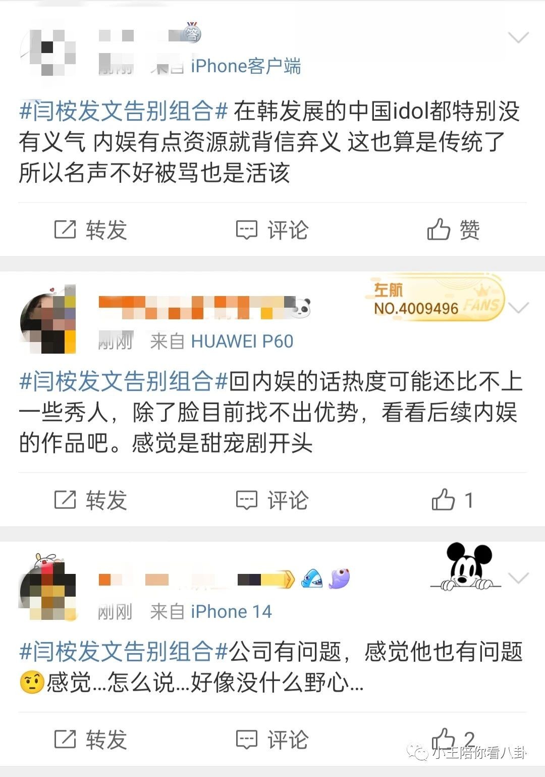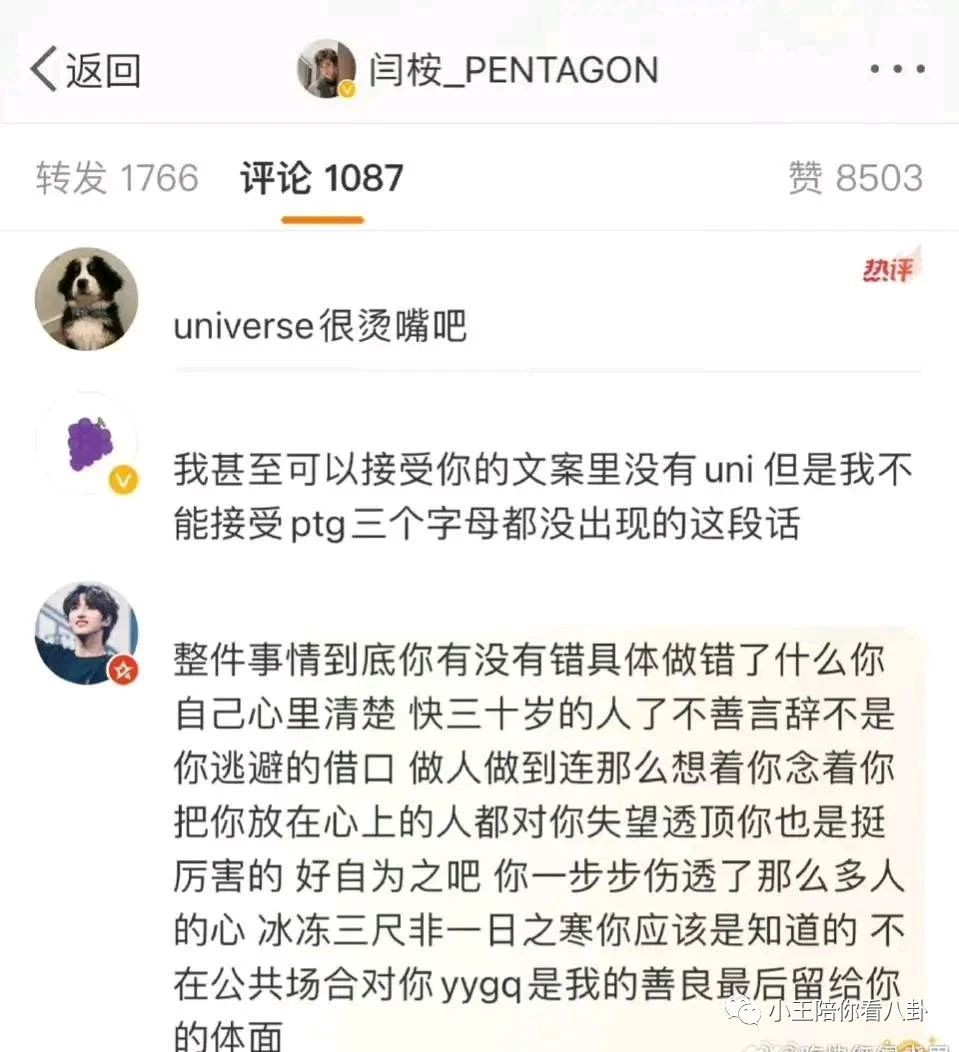 还有一个点是现在脱粉的这些很多都是Pentagon的团粉,基本上每个团粉都会相信“单飞不解散”这种话,所以闫桉这种发言,无疑是狠狠地戳破了粉丝们的幻想,所以他被团粉爆破好像也是情理之中的事情,不过他评论区现在呈现一边倒的状态,反方向证明他的唯粉,应该是真的没几个(bushi~