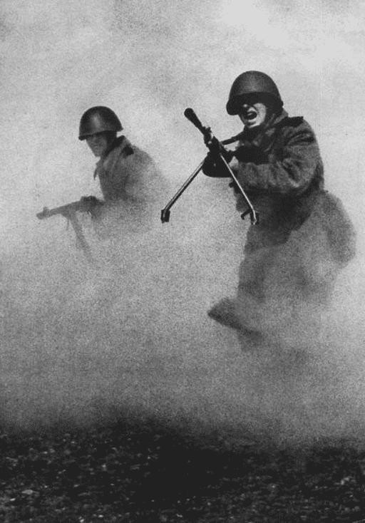 (21)两位苏联士兵,在迷雾中发起了冲锋