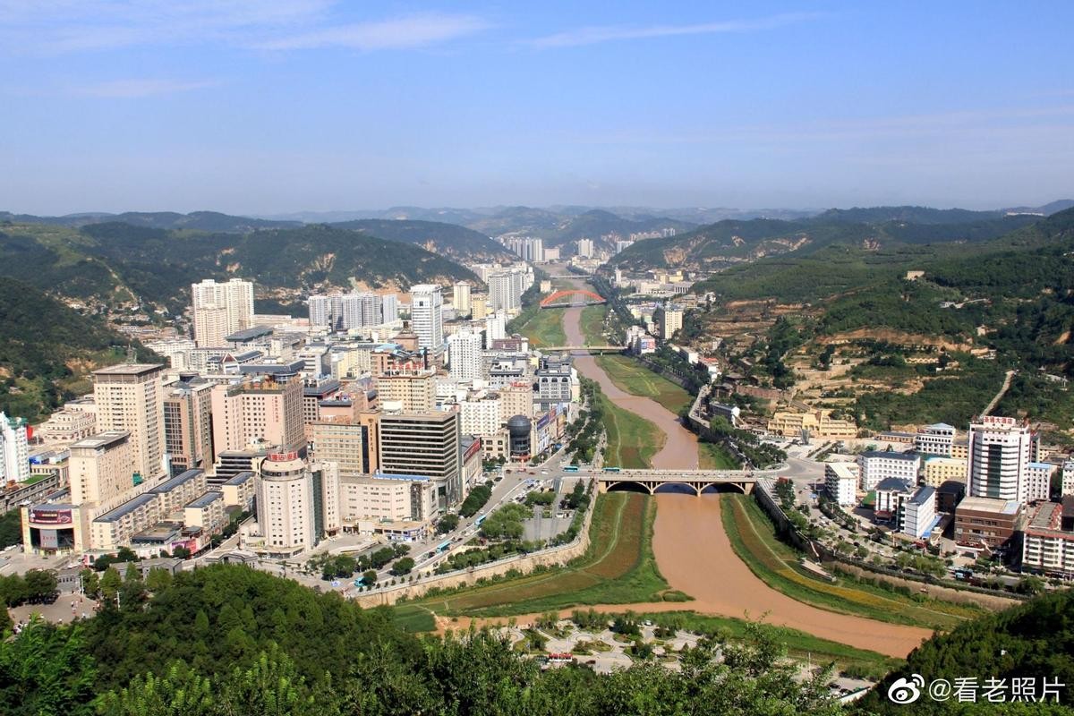 (37)左,1918年的延安古城。右,现在的延安城。去年去过延安。感觉这条山沟的容纳量太大了。狭长地带起高楼,发展空间受限。