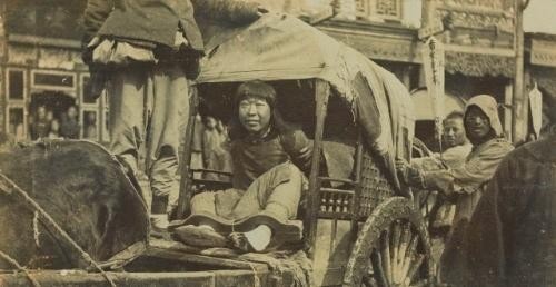 (07)1907,北京。坐在车上的犯人。木质镣铐。斩首,还是游街?