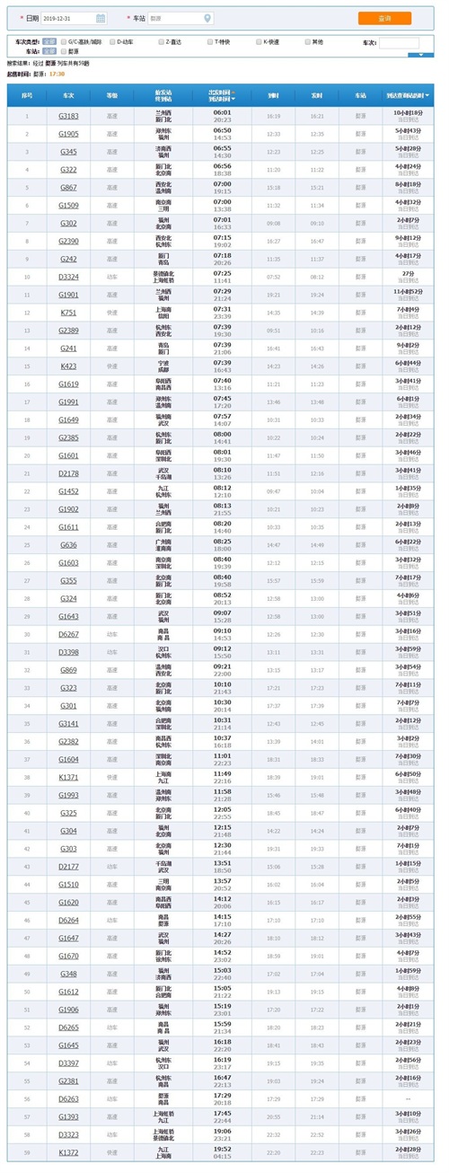 婺源站停靠车次一览表
