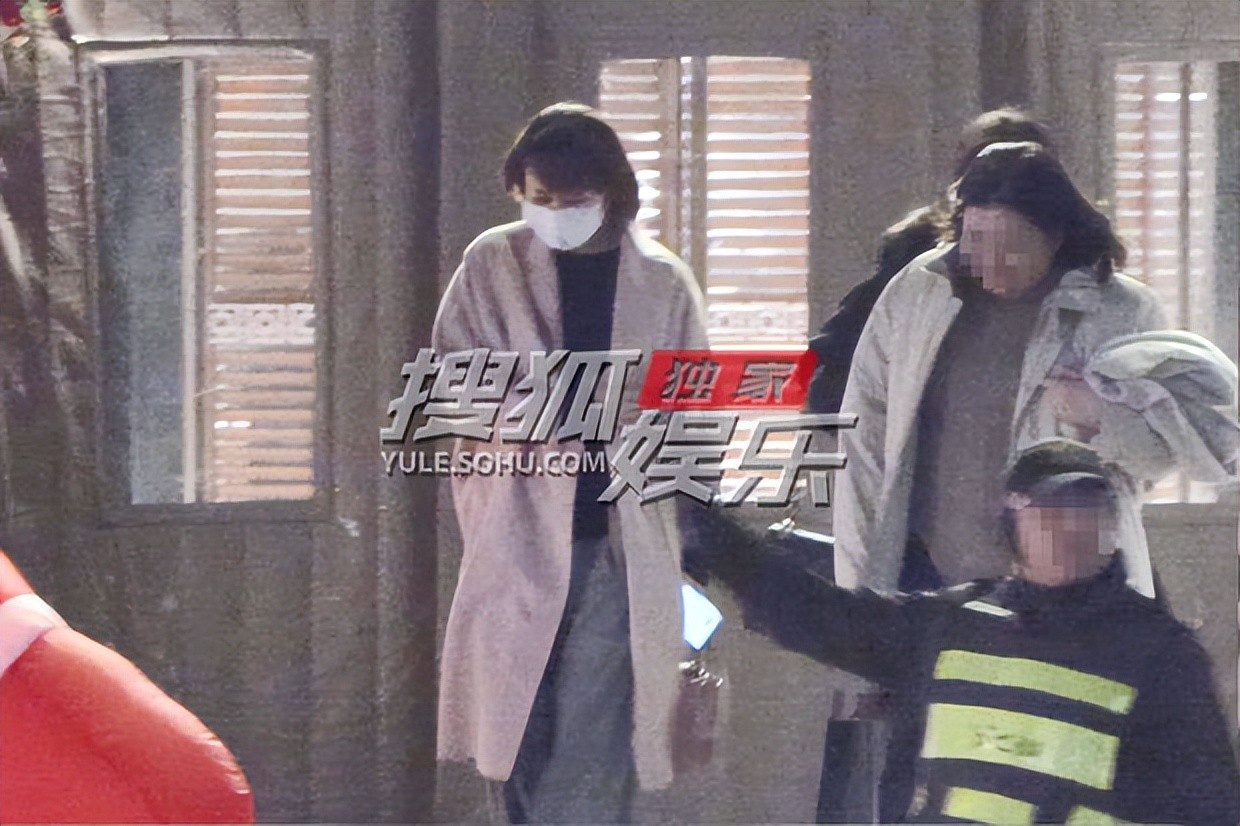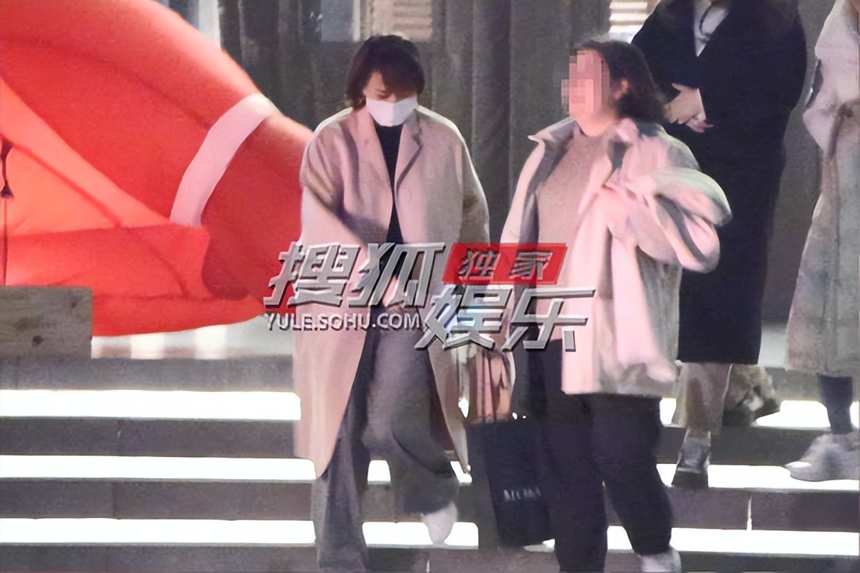 胡静穿着针织衫、阔腿裤,外搭一件羊绒大衣,整身衣服宽松慵懒,竟显得她有点儿微胖。