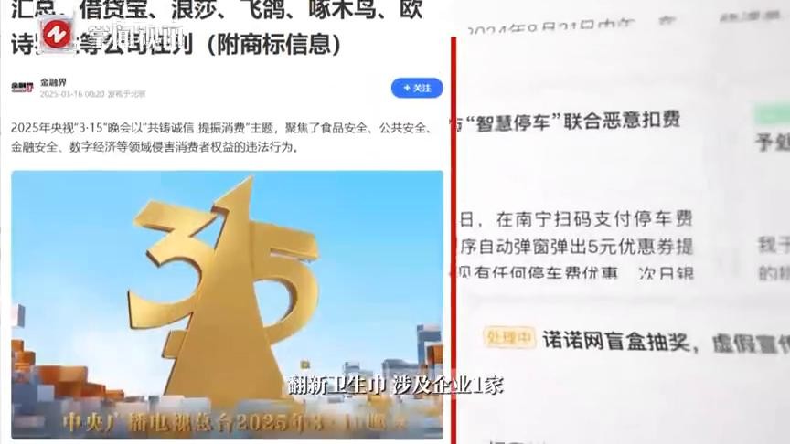 近日2025年央视315晚会曝光了42家企业,借贷宝、浪莎、飞鸽、啄水鸟、欧诗罗兰等公司在列。其中涉事企业大致如下: