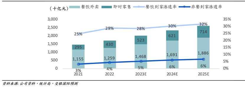 1)随着生活秩序的恢复,2023 年餐饮外卖渗透率较之以往有所下降,这与我们前文推论契合;