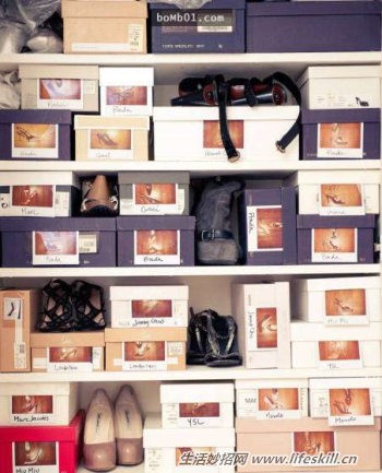 6. 在每个鞋盒上贴照片,这样就不会手忙脚乱了。