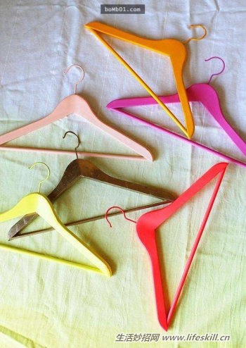 36. 在衣架上缠一些彩色毛线,这样更有趣。