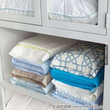 38. 把床上用品收纳进橱柜中。