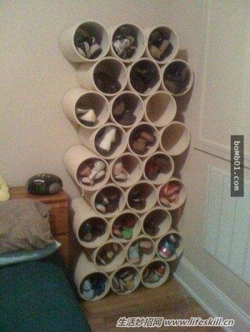 32. PVC管存储鞋子也不错。