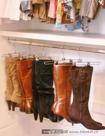 22. 用衣架整理靴子。