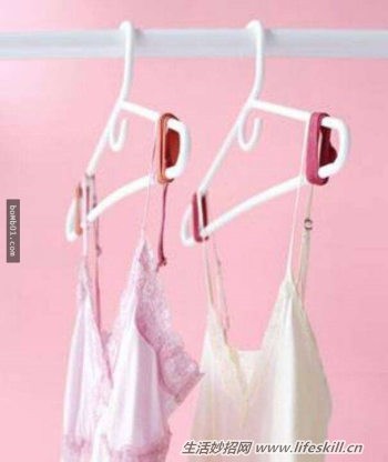 20. 在衣架上套橡皮筋,细肩带衣服就不会滑落了。