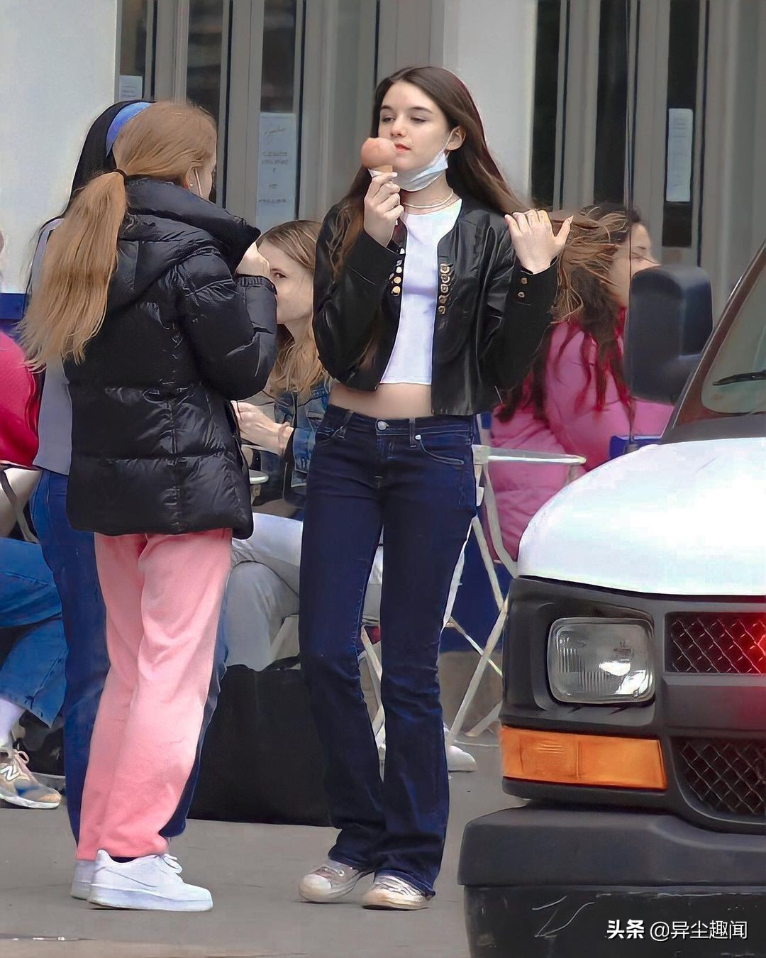 苏瑞在15岁生日时,更被捕捉到与好友相约庆生、在街头开心摆拍的画面!只见,她身穿短版上衣搭配皮衣外套,下半身则是穿着低腰喇叭裤,不仅身材比例好,小蛮腰更是相当吸睛。