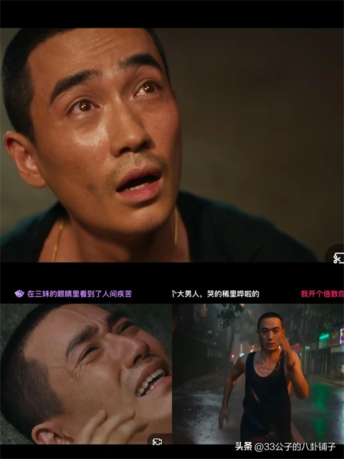 特别是朱一龙的几场哭戏,张弛有度,极具感染力,比如,小文在被亲生母亲接走时极不情愿,拍打着汽车后窗,哭喊着“爸爸”时,他的心瞬间被软化,穿着拖鞋在雨中拼命奔跑去追赶汽车,雨水混着泪水肆意流淌,上演了硬汉柔情的一面。还有在得知自己父亲去世时,想到和父亲顶撞的一幕幕,躺在床上,眼泪不争气地涌出,哭得像个孩子。