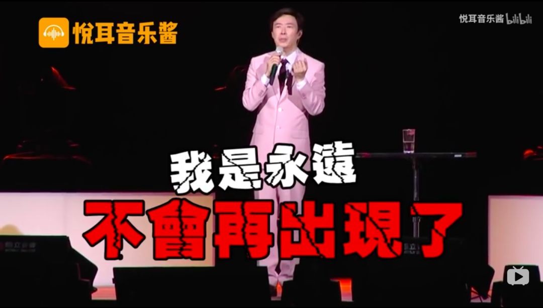 “今天是我在歌坛生涯中,最后一场演唱会了。当然啊,我的情绪啊,我也是一般人,总是会有情绪起伏,百感交集。”