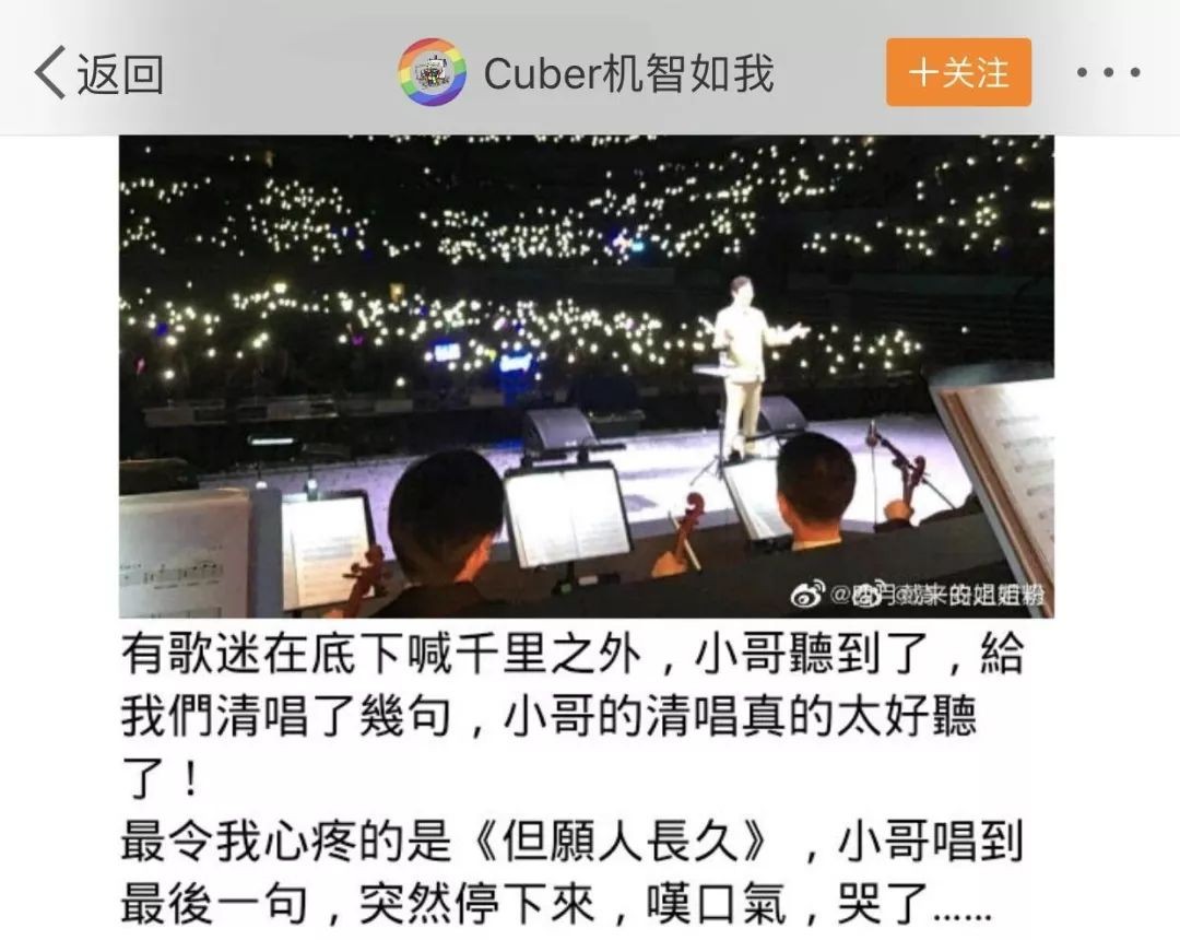 粉丝@Cuber机智如我 分享了重庆演唱会上的一个细节——