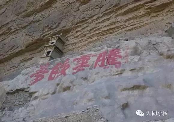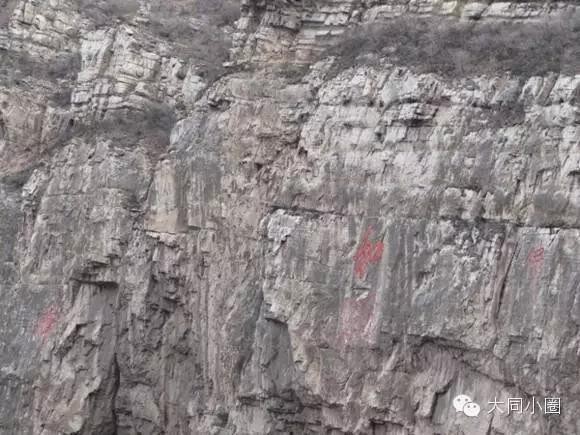 悬空寺对面的山壁上写着佛和道。