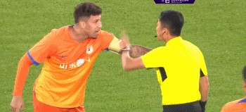 第33分钟,海港造得左路角球,双方在禁区内卡位时,奇塔迪尼故意用头撞击廖力生的脸部,廖力生痛苦倒地,马宁口头警告了奇塔迪尼。奥斯卡开出角球,前点的王燊超头球后蹭,足球划门而过。