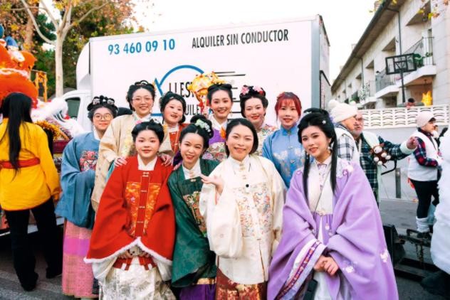 在加泰罗尼亚刚刚结束的三王节游行(Cabalgata de Reyes Magos)活动中,中国留学生和汉服协会的代表身着明制汉服,加入巡游队伍,向沿途的观众撒糖果。通过参与当地的节庆活动,我们不仅展示了中国传统文化的魅力,也体现了中西文化的多元融合。汉服作为中国传统文化的象征,其优雅的设计和丰富的文化内涵吸引了众多观众的目光。同时,舞狮队的精彩表演更将中国传统的艺术形式与西班牙的节日氛围完美结合,为当地民众带来了一次独特的文化体验。