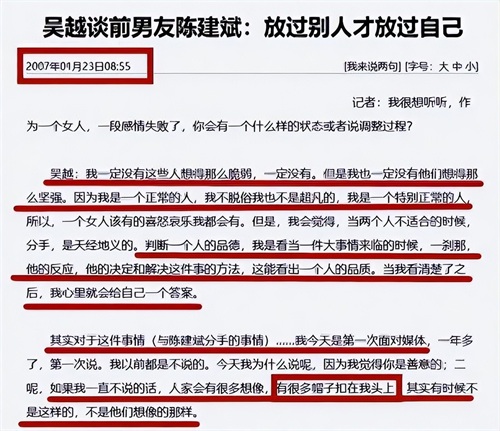多年后,谈及这段感情经历,吴越坦言,那段时间,自己经历了人生的低谷,但她没有被这段感情打倒,而是选择用时间来自愈。