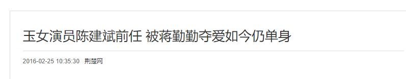荆楚网:(《玉女演员陈建斌前任 被蒋勤勤夺爱如今仍单身》2016.02.25)