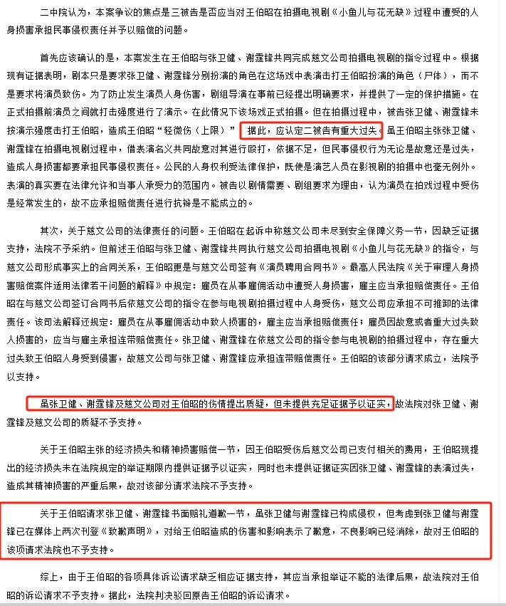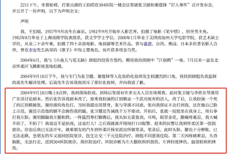 值得一提的是,关于王伯昭被打一事,很快就又出现了另一种说法,称是他在剧组时曾调戏女性工作人员,张谢二人看不过去,才借戏教训他。
