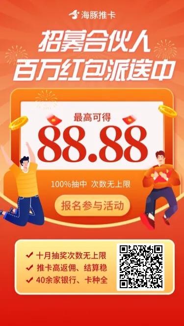 海豚推卡平台是有河北咔哧咔哧科技有限公司运维的平台,公司有多年办卡平台运维经验。海豚推卡全民办卡的平台,零加盟费、零代理费,不存在任何形式的收费内容。大家可以通过平台轻松在家办卡,并拿到银行给出的高额佣金。