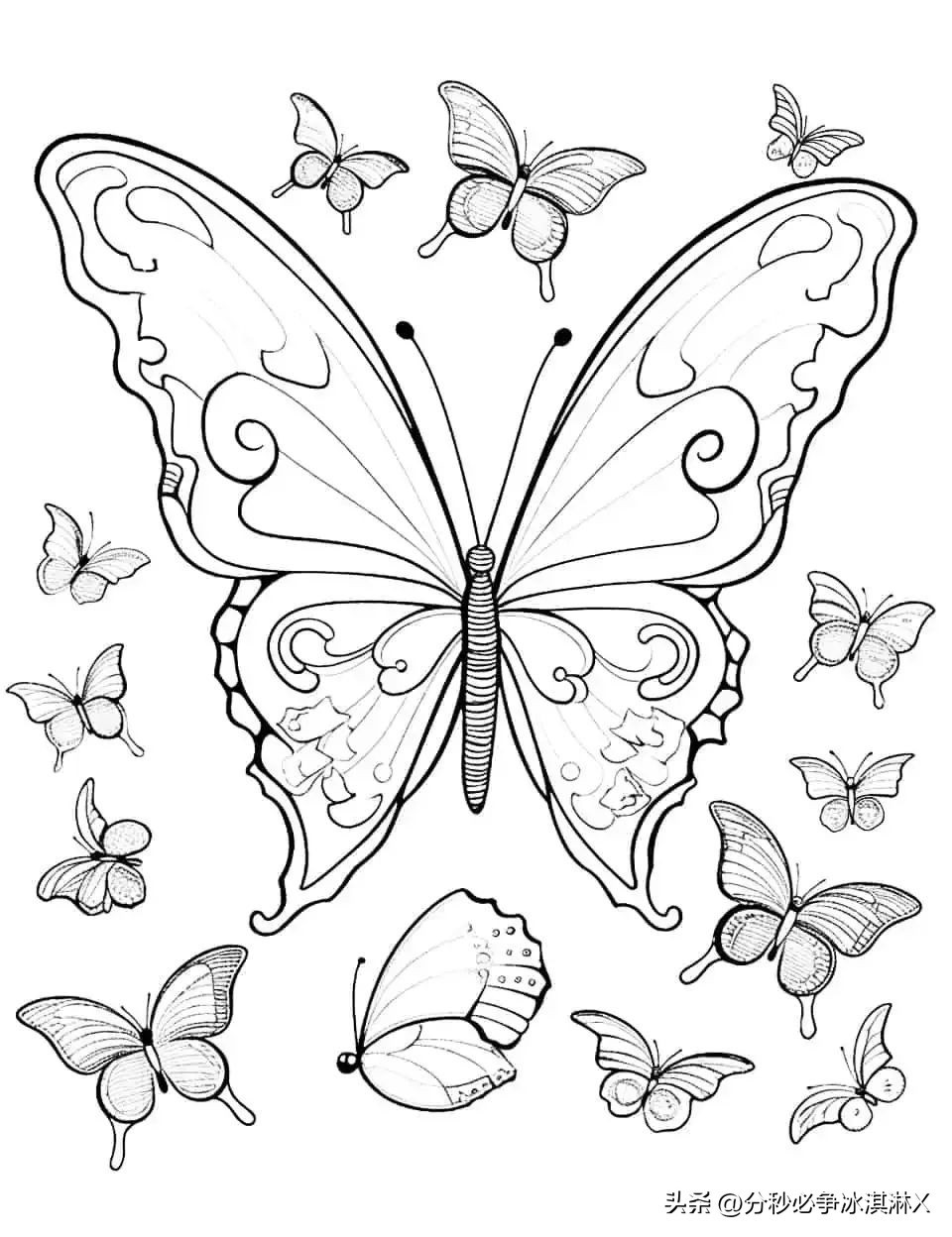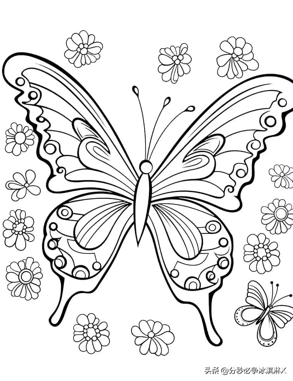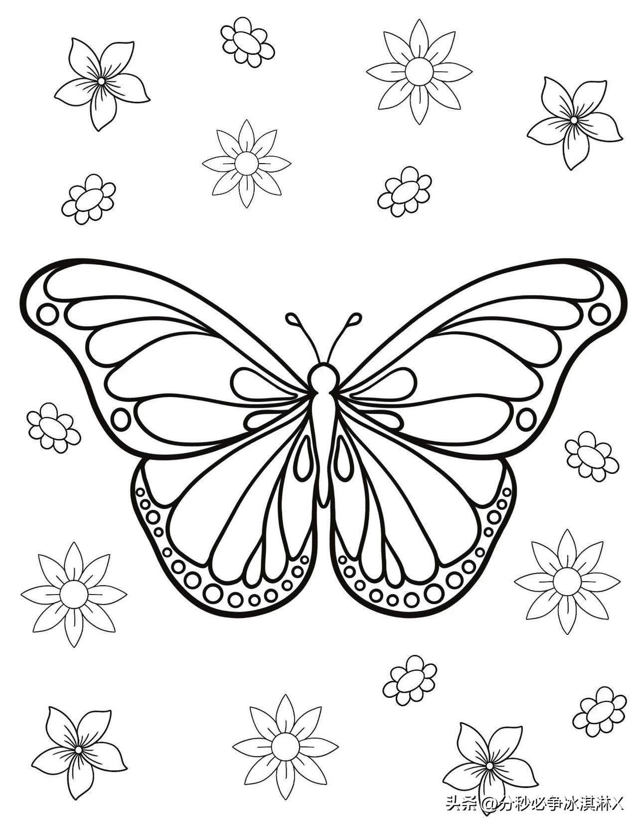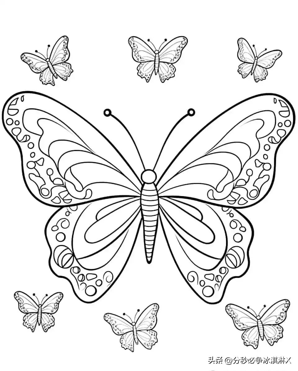45幅蝴蝶简笔画线稿,够你画半年哟