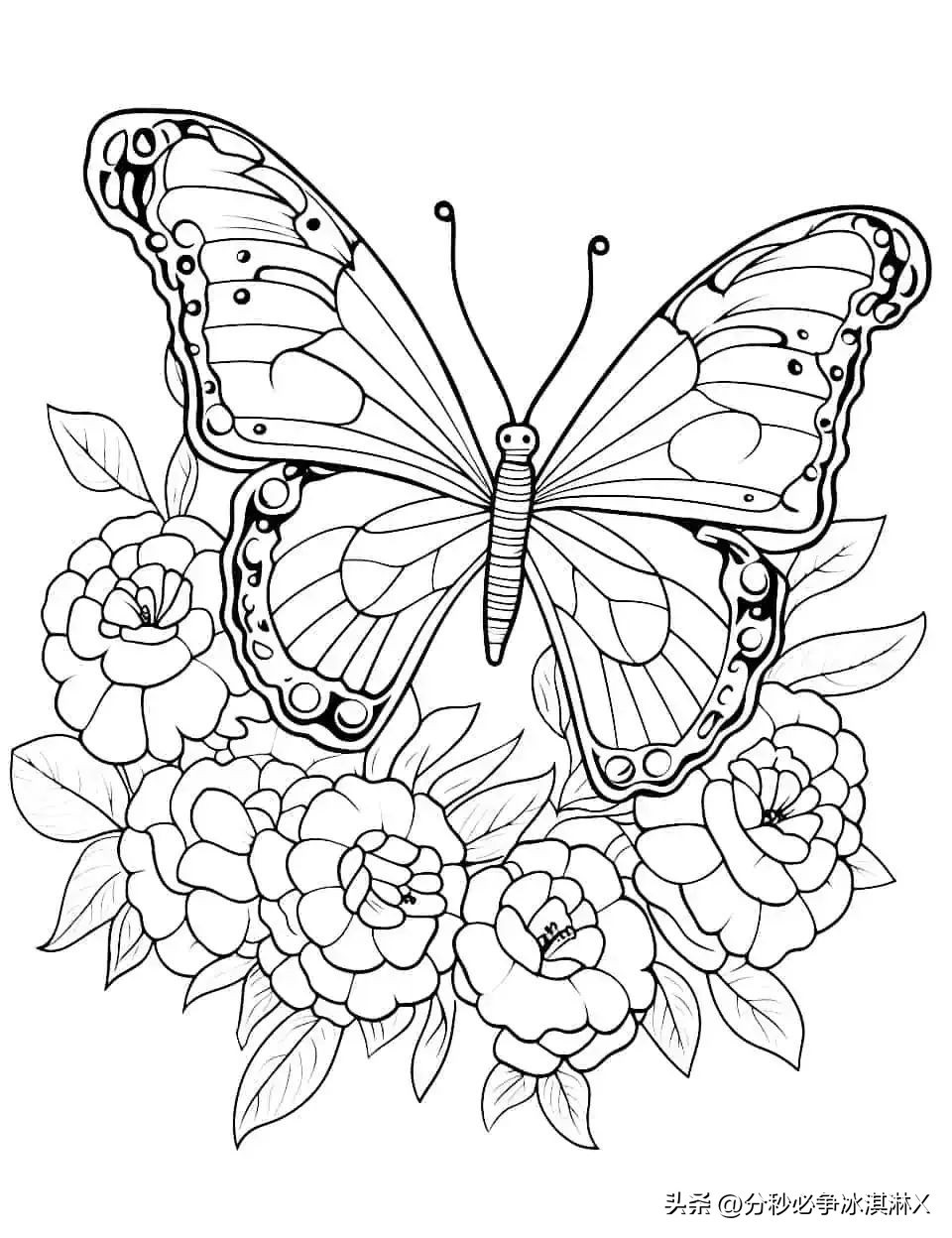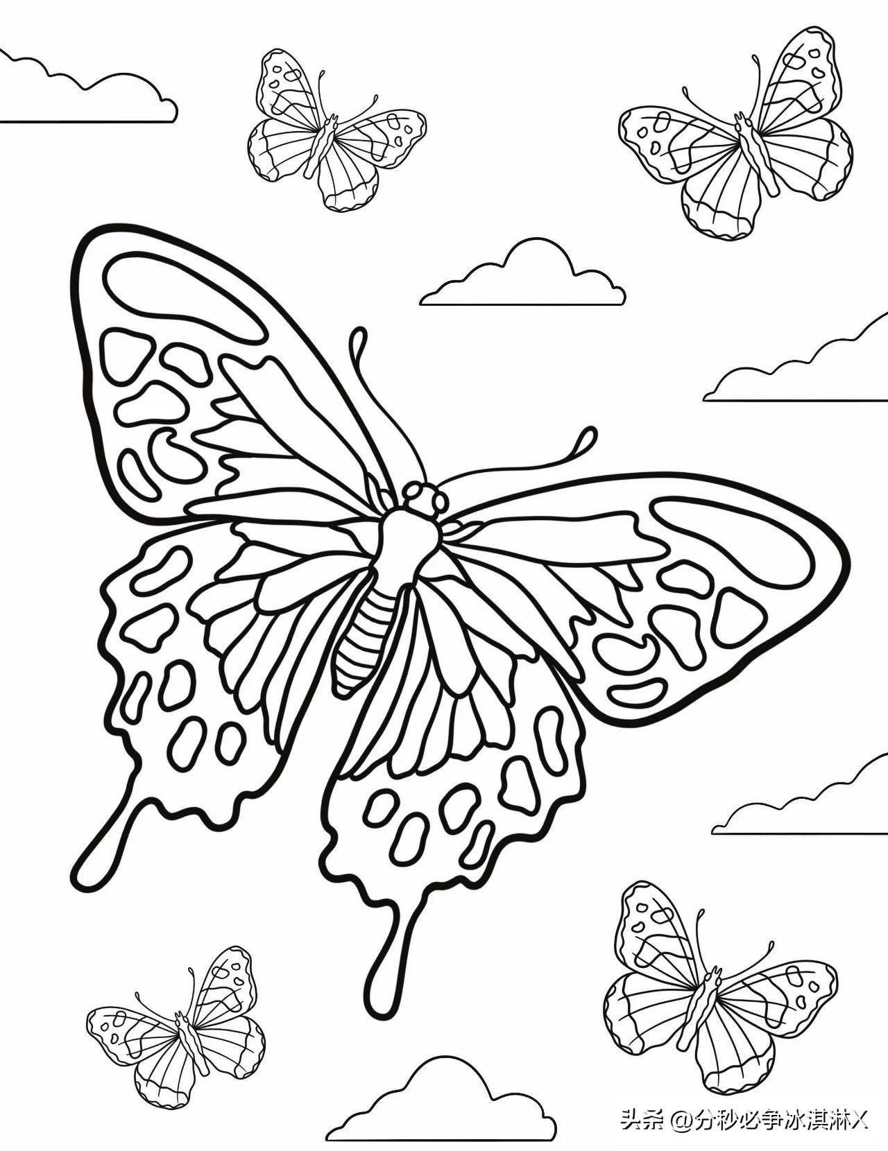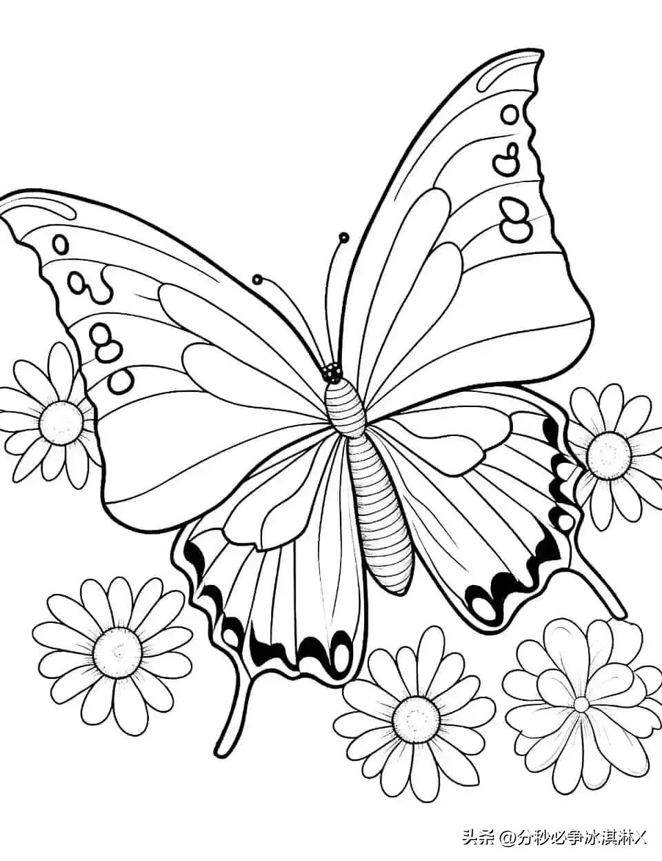 45幅蝴蝶简笔画线稿,够你画半年哟