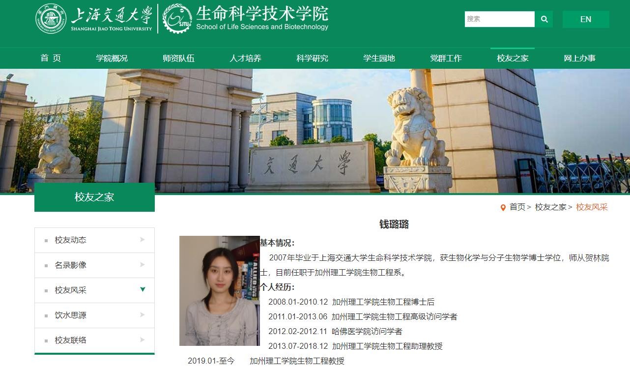 但这些仅仅是传说而已,并无任何的真凭实据。不过钱璐璐教授的过往经历也确实成谜,官网上能查到的最早履历只有她2007年从上海交大获得博士学位。