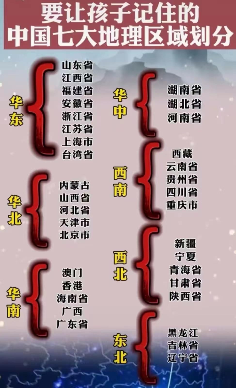 要让孩子们记住的,中国的七大地理区域划分,需要的朋友们可收藏哦!