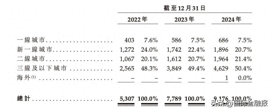 虽然成立于上海,但沪上阿姨的主阵地在下沉市场,约50.4%门店位于三线及以下城市;二线城市和新一线城市的门店占比分别为21.4%、20.7%;一线城市门店仅686家,占总数的7.5%。