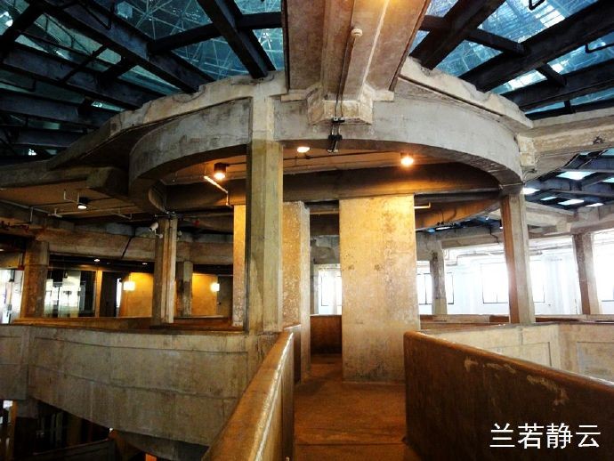 遗憾的是这个地方去的人很少,那里的店铺人气也不旺,我估计跟阴气重有关系吧,毕竟是宰牛的地方。要命的是参观那天现场播放的背景音乐很奇特,神秘飘忽,我独自一人穿行在空荡荡昏暗交错的廊道中,沿途没有遇到人,期间毛孔竖了好几次,但对建筑的热爱令我无所畏惧,一直走到顶楼,这么奇特的建筑无论如何都是必须去看的。