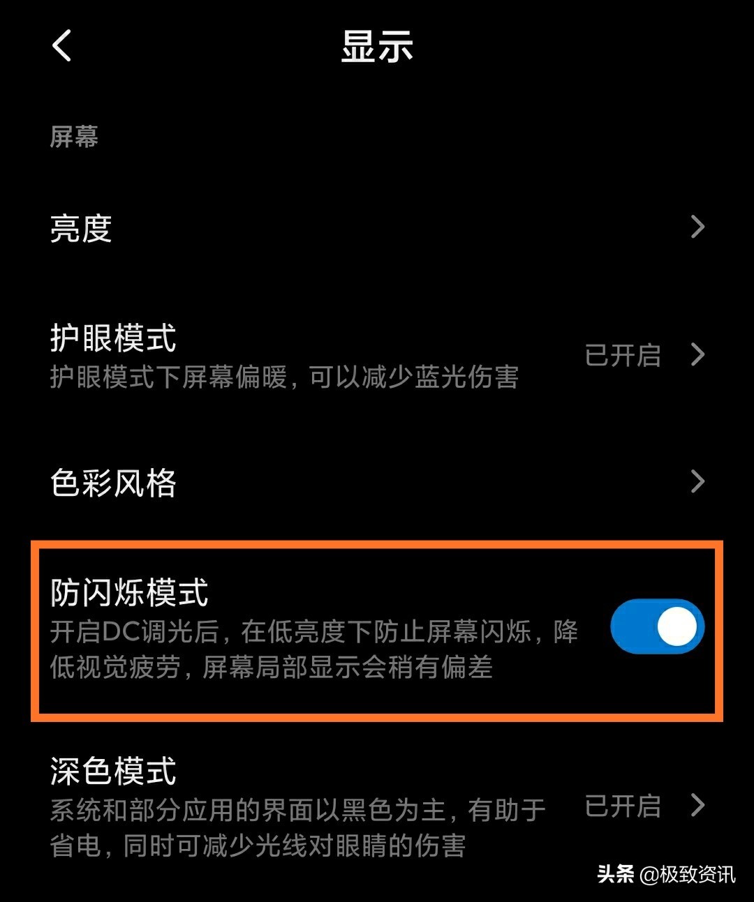 找到并打开防闪烁模式。