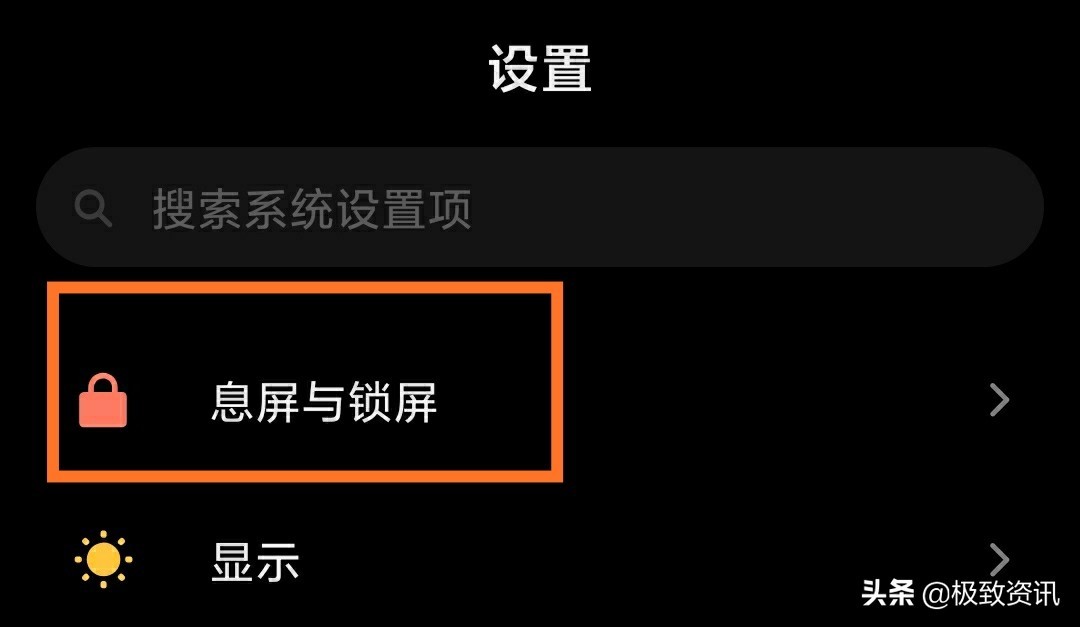 找到并点击息屏与锁屏。