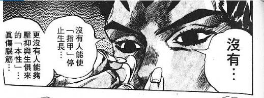 所以漫画中有着大量的吉良吉影指甲特写镜头。每次指甲变长,就象征着他的本性就要发作。而他的本性就是杀人。更多的是伴随着严重的恋手癖,而去杀害女性。