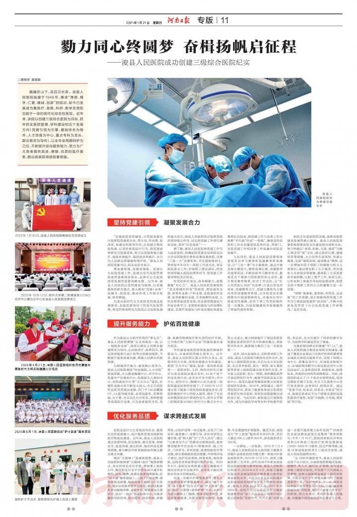 勠力同心终圆梦 奋楫扬帆启征程——浚县人民医院成功创建三级综合医院纪实