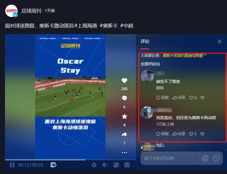 作为他在现有合同下为上海海港出战的最后一场比赛,奥斯卡的每一个动作都牵动着球迷的心。
