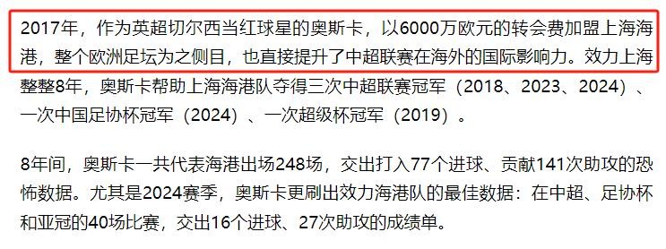 有人说,奥斯卡在上海海港的六年半时光,为中国贡献很多!