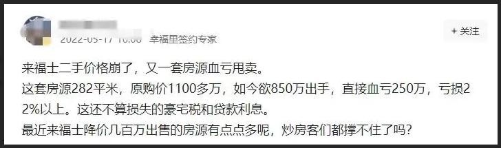 “炒房客直接血亏250万,亏损25%以上,这还不算损失的豪宅税和贷款利息。”