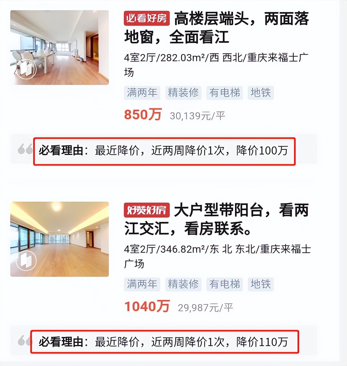 重庆来福士二手房价崩了?业主集体降价砸盘,豪宅标杆岌岌可危