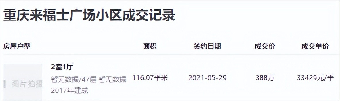 从2019年12月份的一次拍卖来看,一套建面336平的来福士的住宅,最后成交价为1153万,算下来建面价格在34000元/平左右,