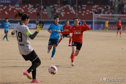 比赛开始之后,两队展开激烈对决,场上攻防节奏很快。第12分钟,江苏无锡女足前锋邵子钦在门前抓住机会,推射破门,帮助球队1-0领先。