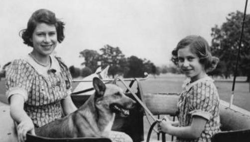 这张是英国女王和乔治六世,妹妹玛格丽特公主,柯基犬Susan的合影,画面极具历史意义,当时女王的父亲健在,格丽特公主清丽脱俗,还有呆萌可爱的柯基犬Susan。
