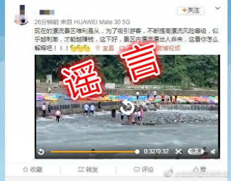 昨日,一则有关“湖北省宜昌市一漂流景区发生溺亡事故”的传闻在微博微信等互联网平台流传,该传闻称“现在的漂流景区唯利是从,为了吸引游客,不断提高漂流风险等级,似乎越刺激,才能越赚钱,这下好,景区内漂流漂出人命来,这看你怎么解释吧”,并配有相关现场视频,引发不少网友转发关注。